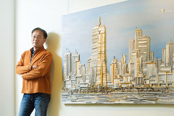 [chosun.com] 작가 이정웅-물감 대신 헌책으로 자연과 도시 표현