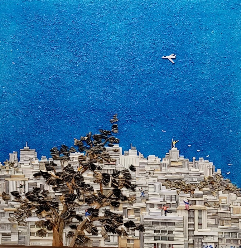한강에서 한남동 쪽을 바라보면서 제작한 작품으로 코로나 시대 떠나지 못하는 답답함을 휴식적 전환의 의미로 담아낸 작품이다.