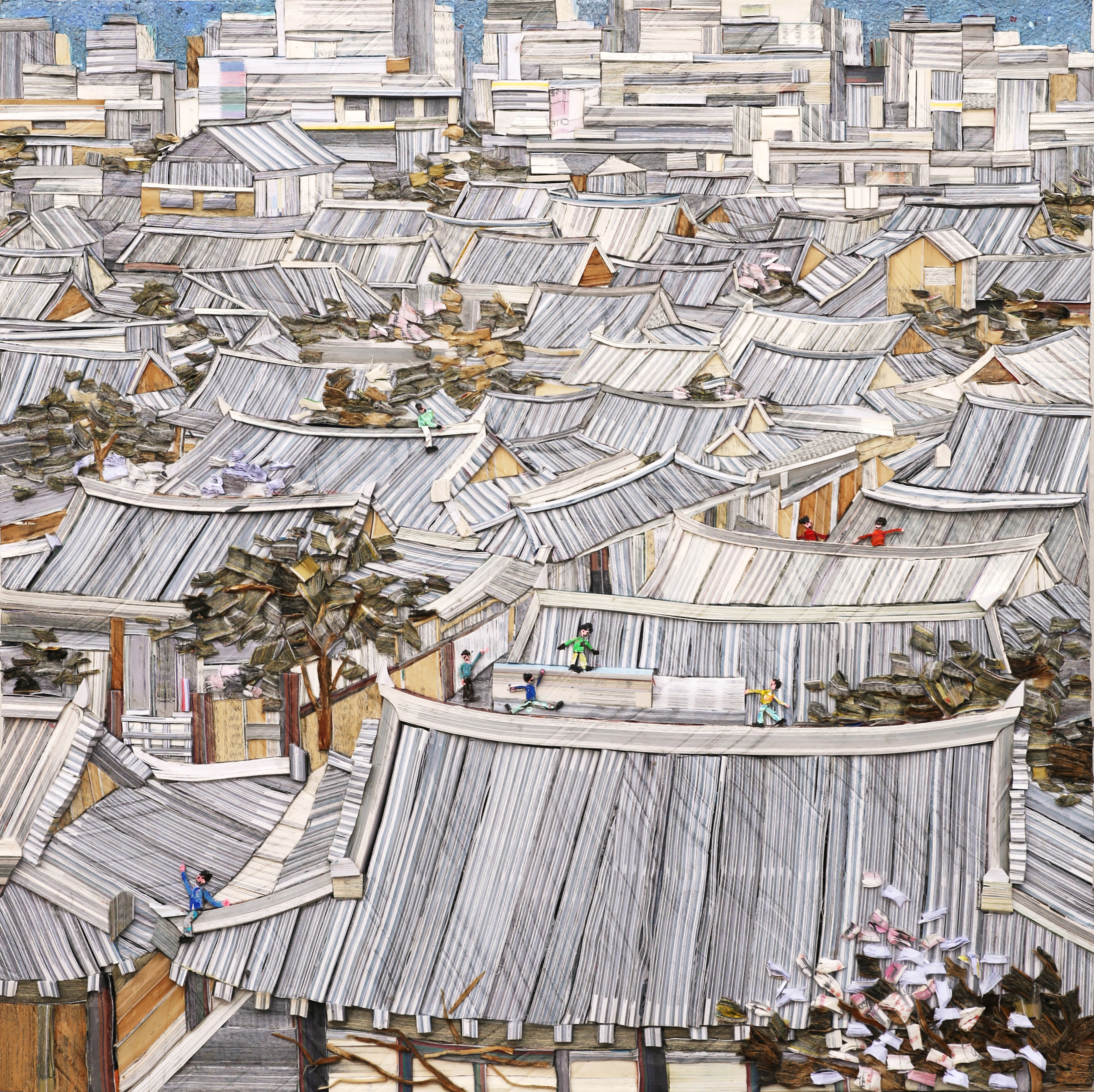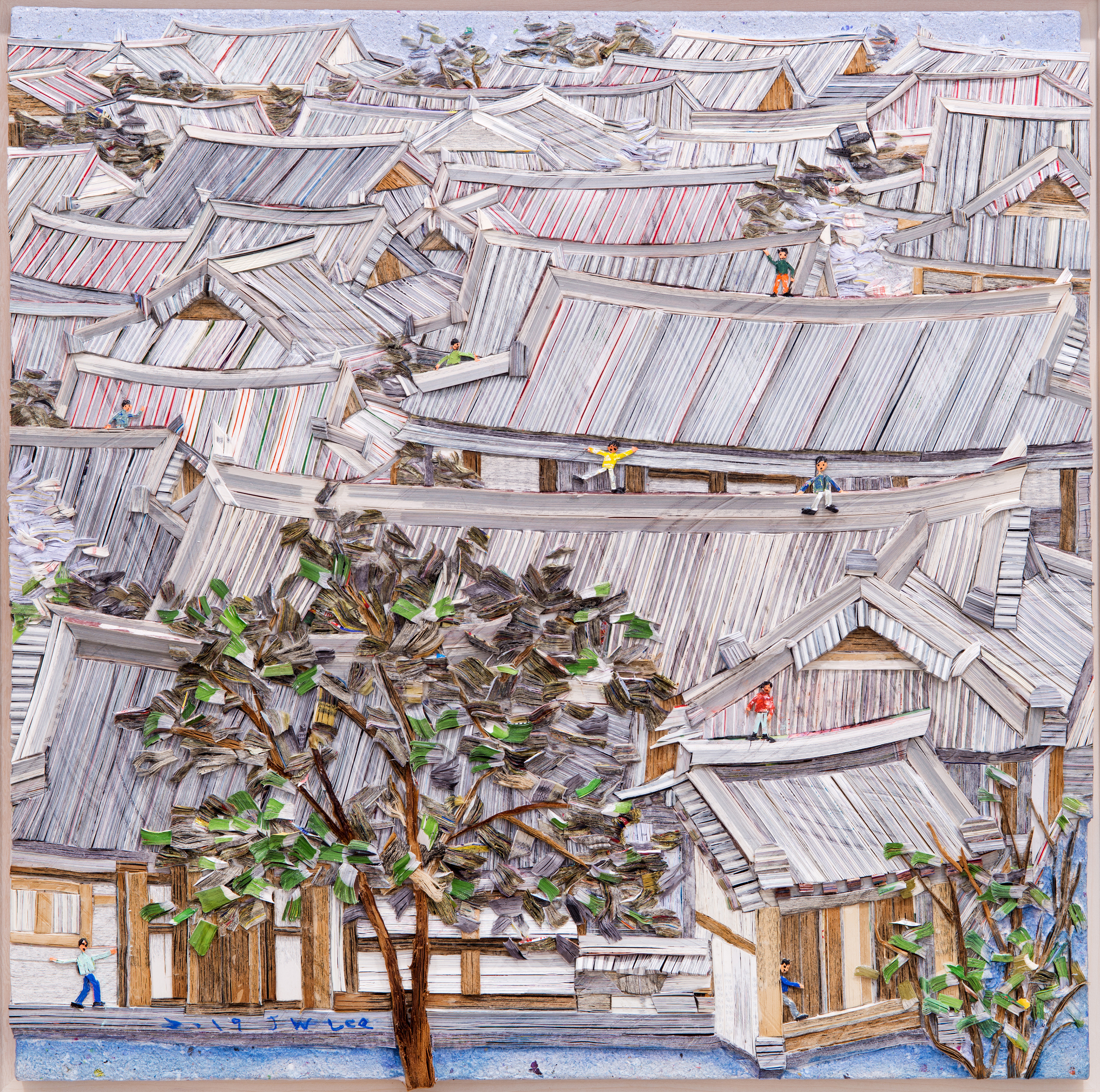 City Story-003, 73x73cm, Book+Mixed media, 2019